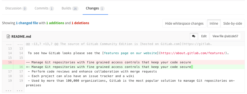 - Squash and merge for a cleaner commit history (available in GitLab Enterprise Edition Starter)